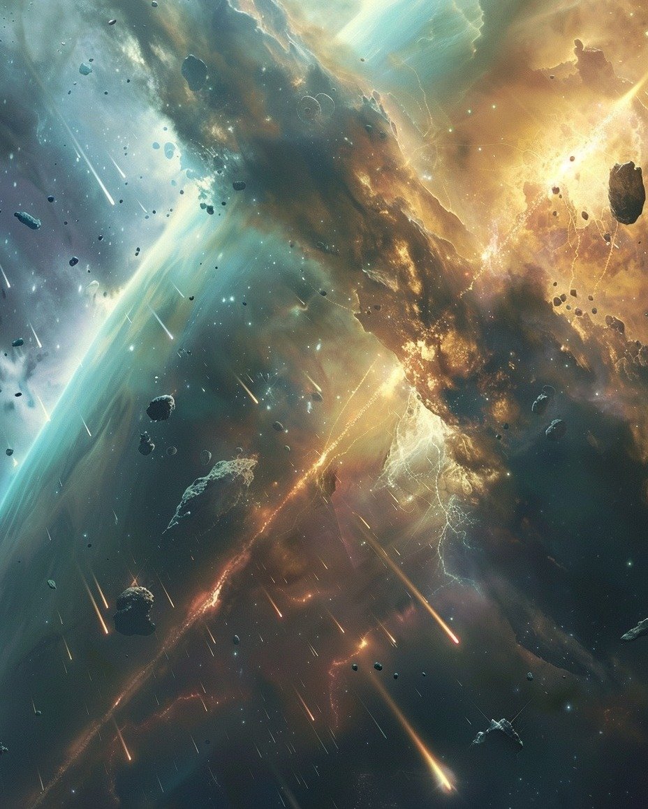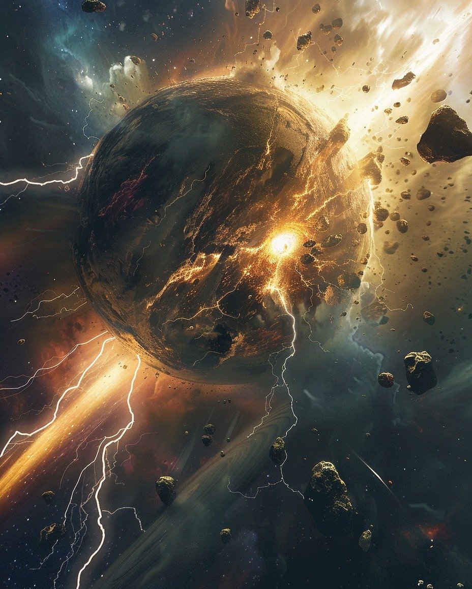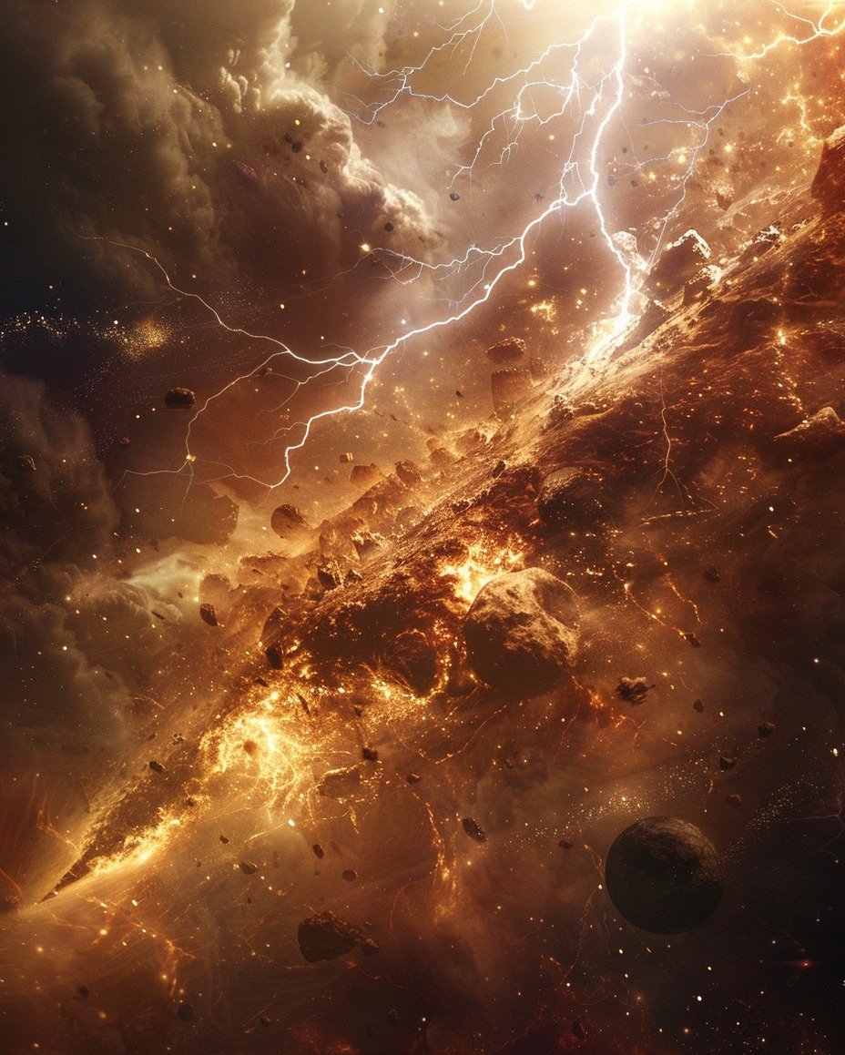 A glimpse into the cataclysmic beauty of the cosmos. Each image captures the awe-inspiring power and violent energy of the universe, from explosive nebulae to cascading lightning tearing through space. An endless dance of creation and destruction, where stars are born, worlds collide, and energy flows in a chaotic harmony. Witness the might and mystery of the universe like never before. 🌌⚡✨