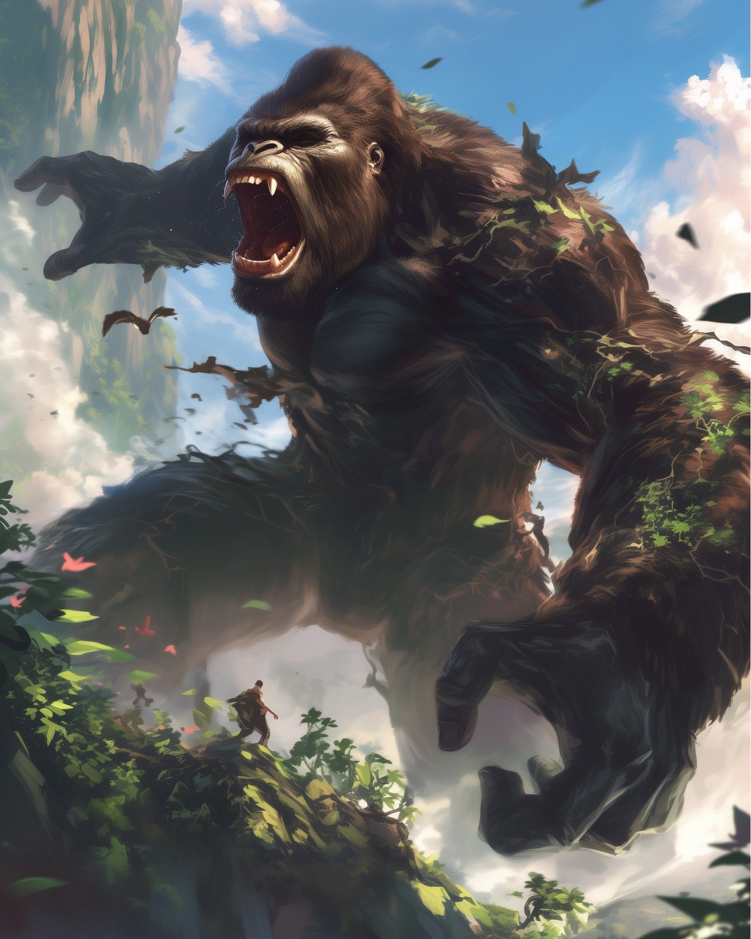 “Behold the guardian of the mountains, a colossal force of nature that stands between the realms of man and the mysteries of the wild. 🦍🏔️ With every roar, he echoes the untamed spirit of the wilderness, reminding us of the ancient power that lies within the Earth. Ready to face the beast within and beyond? 🌿⚡