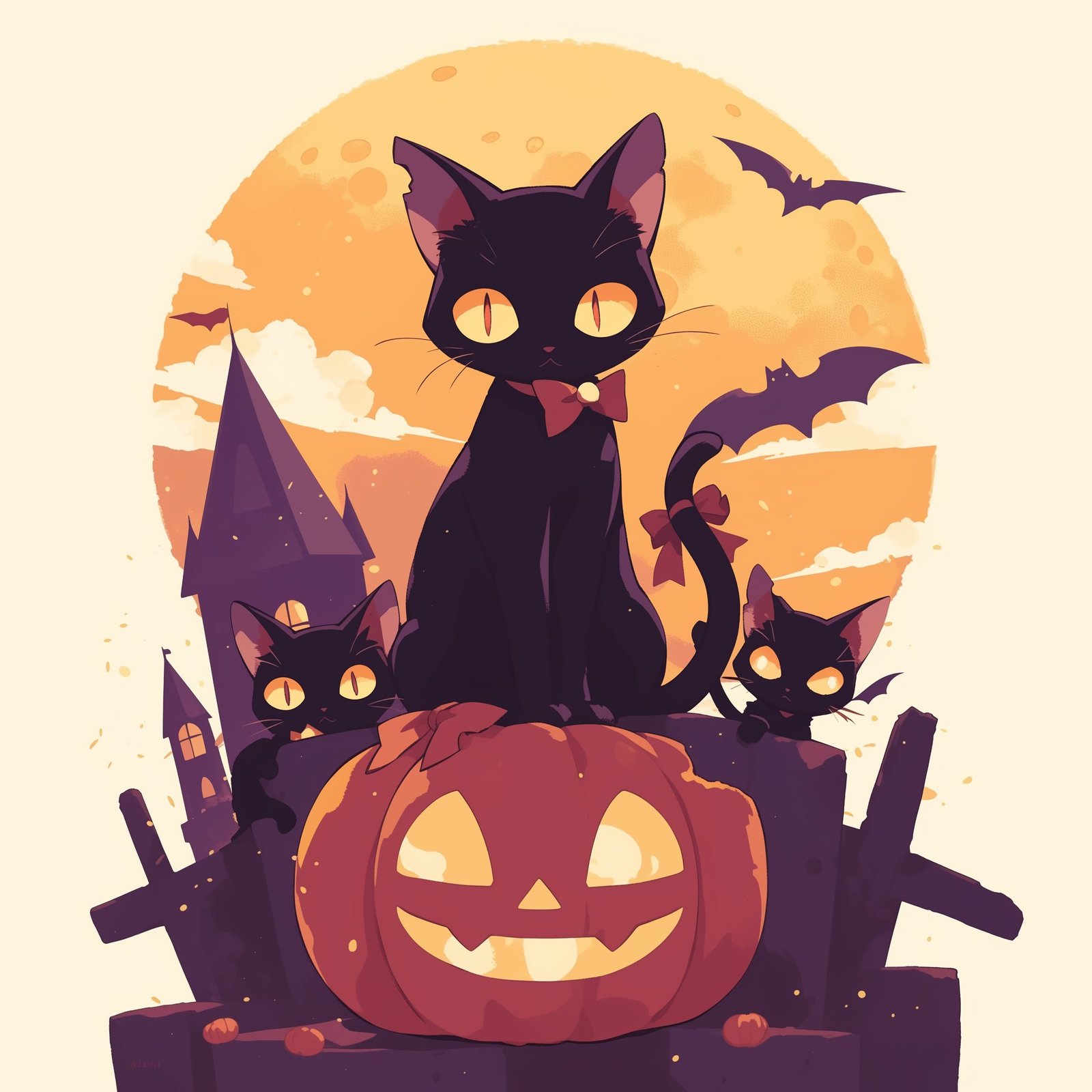Black cats and pumpkins under the Halloween moon! 🖤🎃 These spooky felines are ready to cast some purr-fectly magical spells. 🐱✨🦇 Let the Halloween mischief begin!