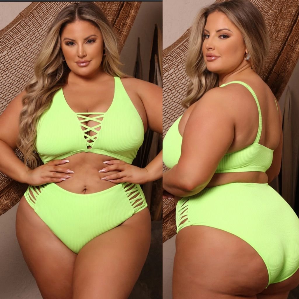 Coastal Waves Swim | New Coastal Waves Caged High Waist Halter Plus Size Bikini Set Lime Green Nwt 3x | Color: Green/White | Size: 3x