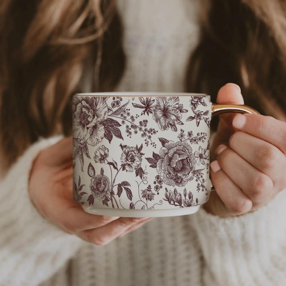 • Sweet Water Decor Brown Delft Gold Handle Mug - 14oz