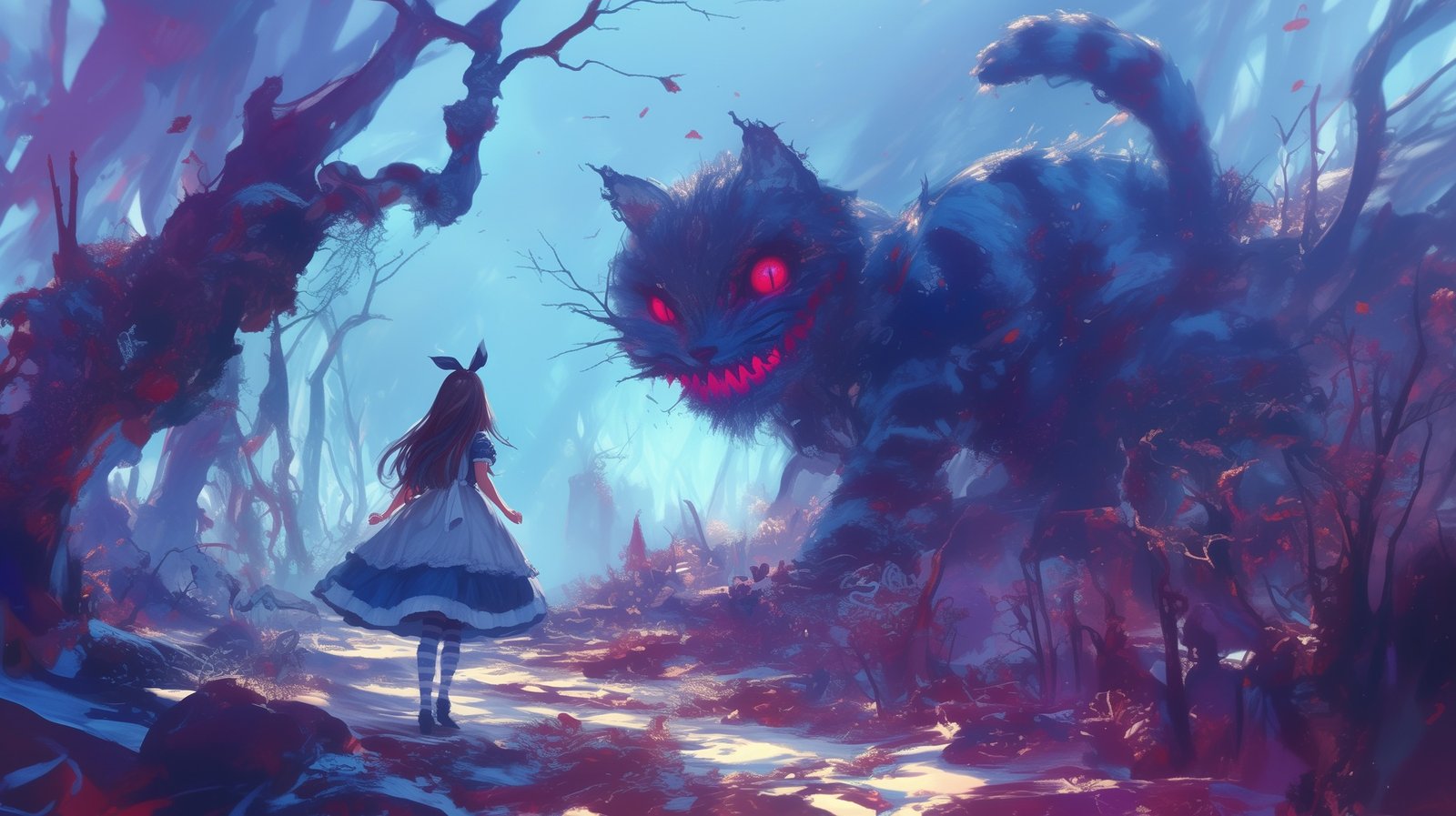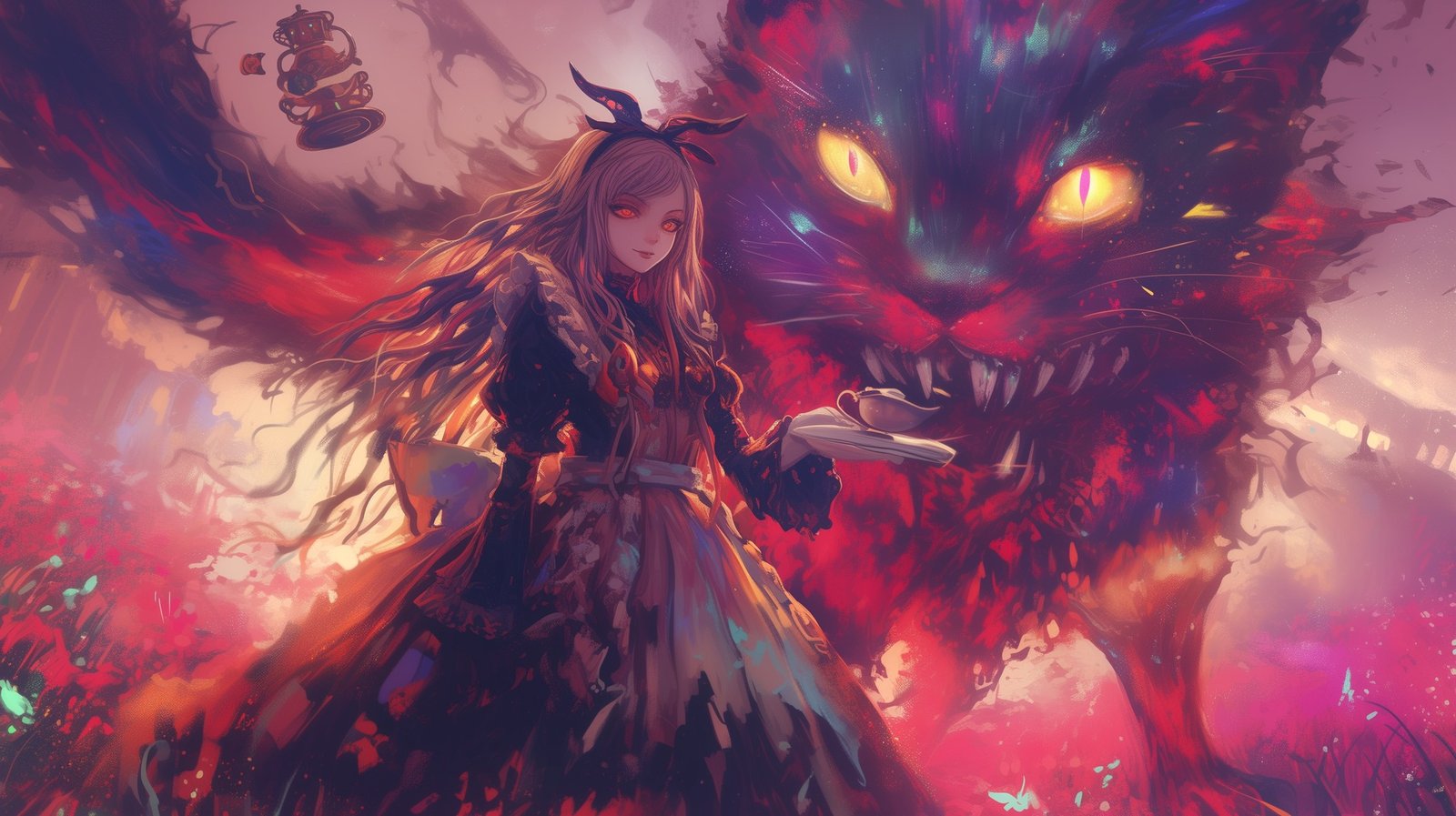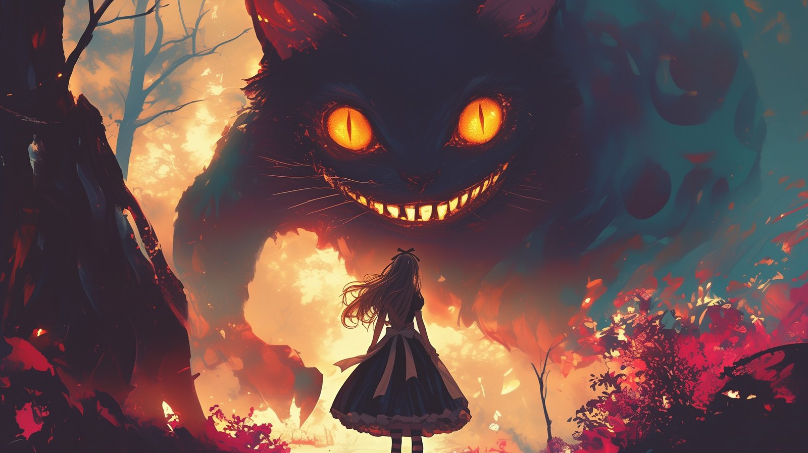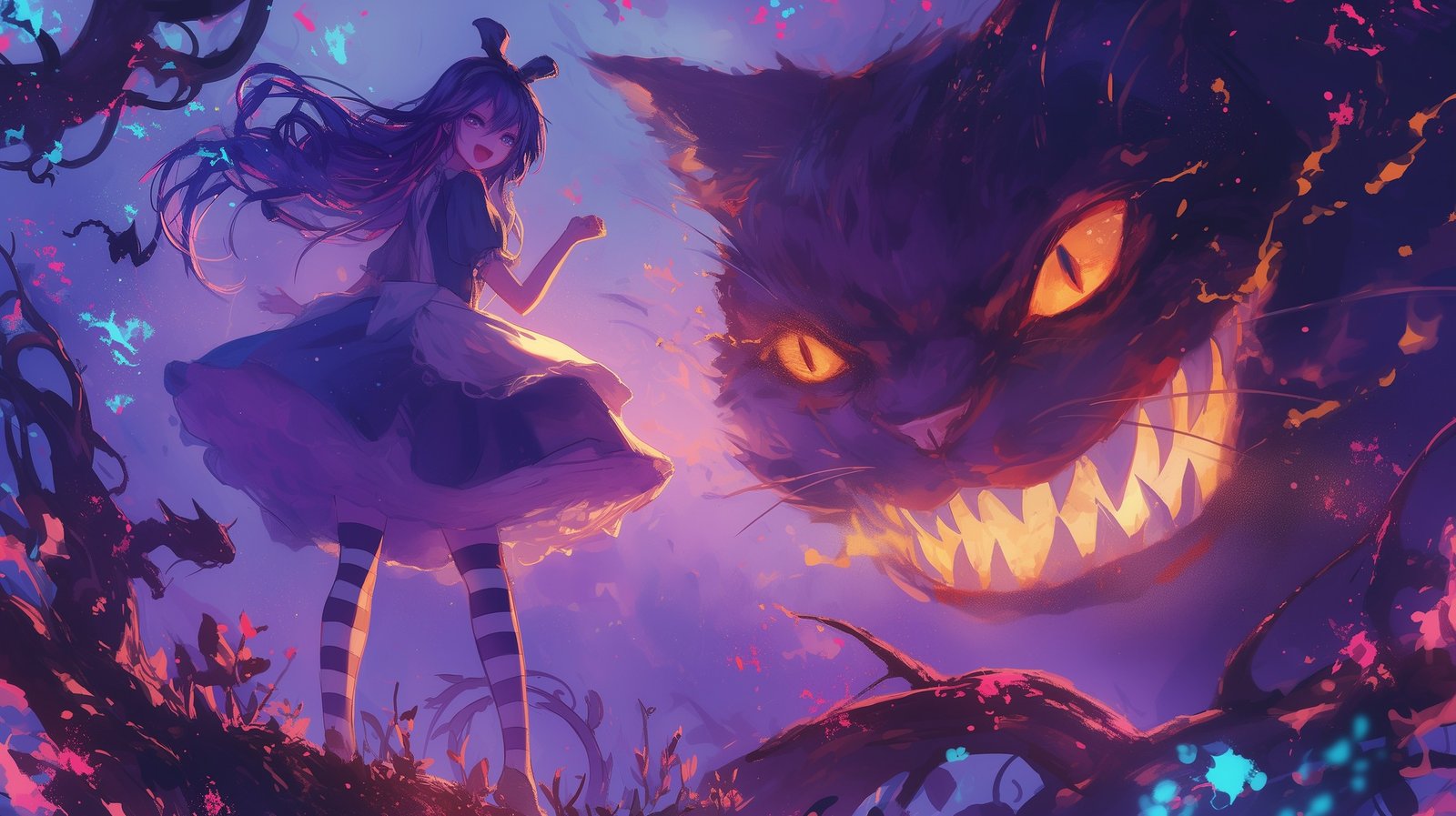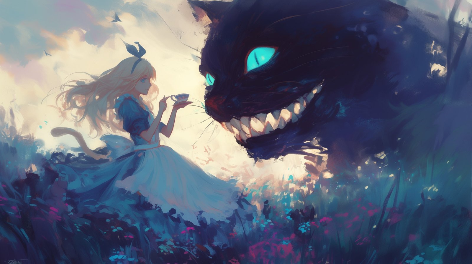 Down the rabbit hole and into a world where nothing is as it seems. 🌌✨ Dive into the dreamscape with Alice and her mischievous guide, the Cheshire Cat, where whimsy meets wonder, and the unknown beckons. 🐾🌀