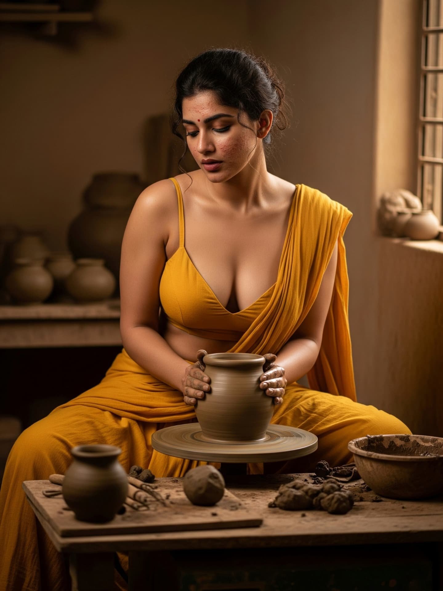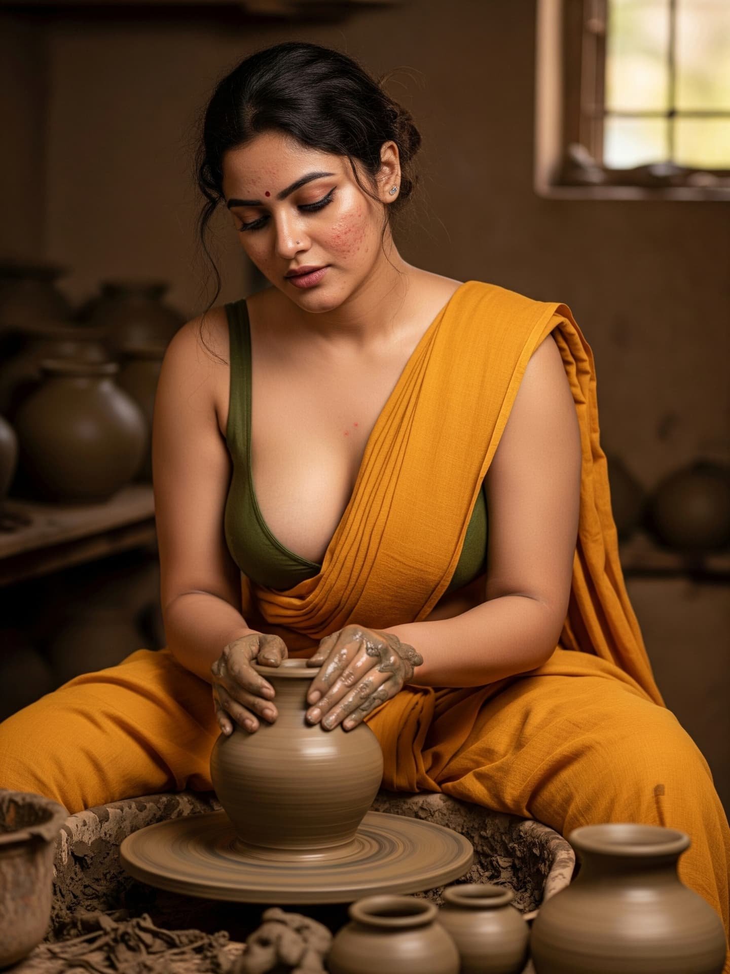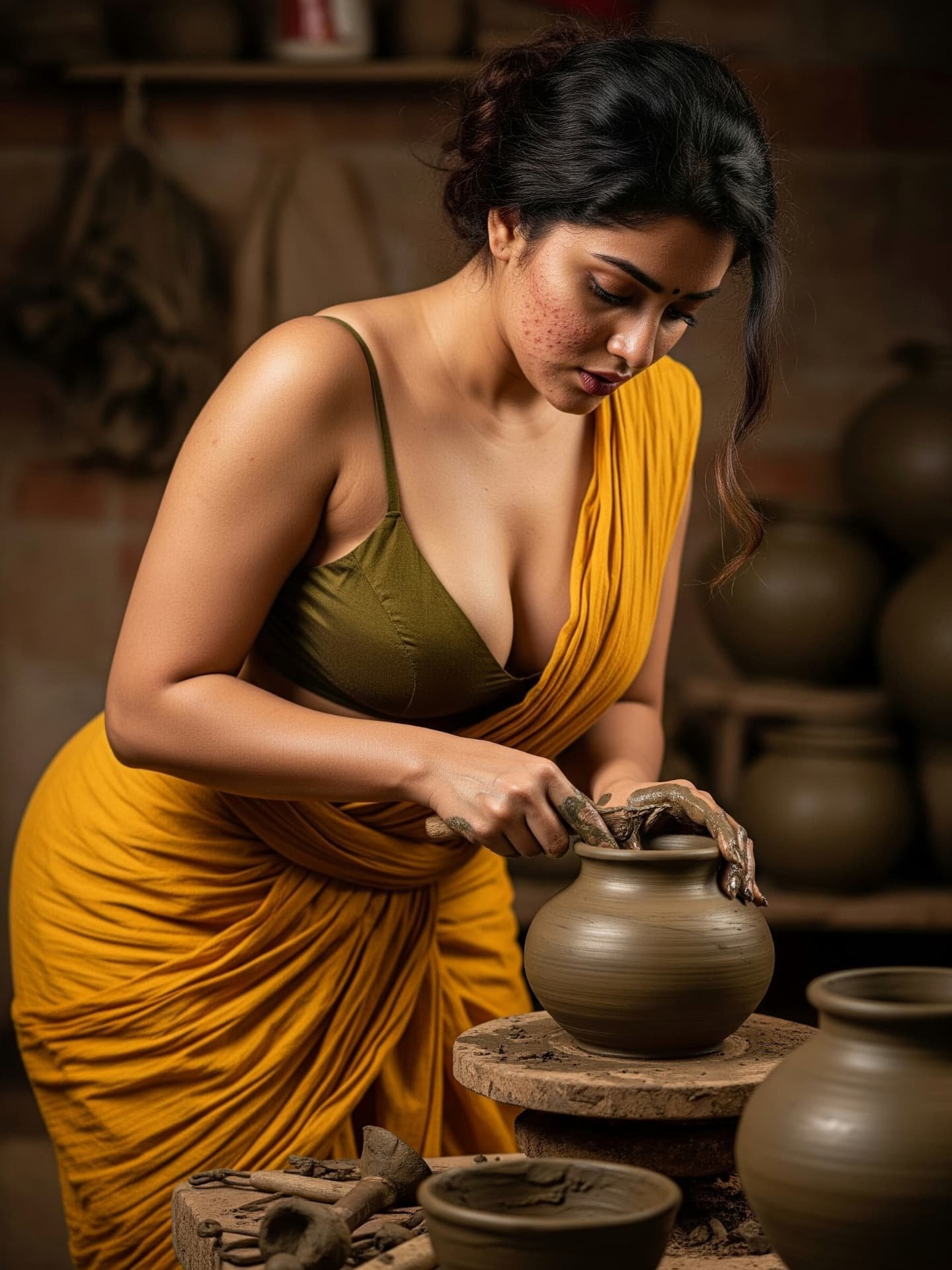 [Pottery, Art, Saree, Craftsmanship, Traditional, Natural beauty, Handmade, Village life, Artistic, Clay, south Indian]