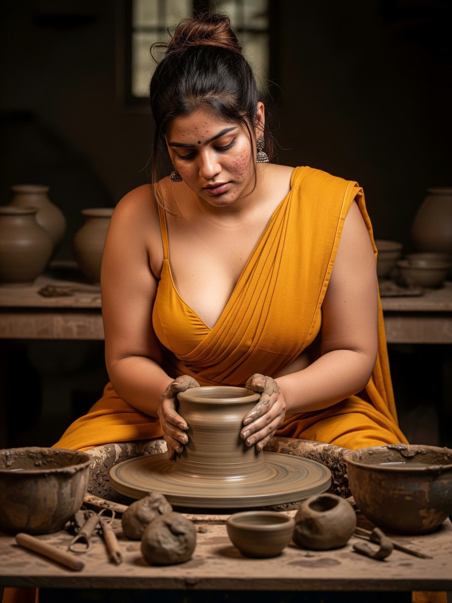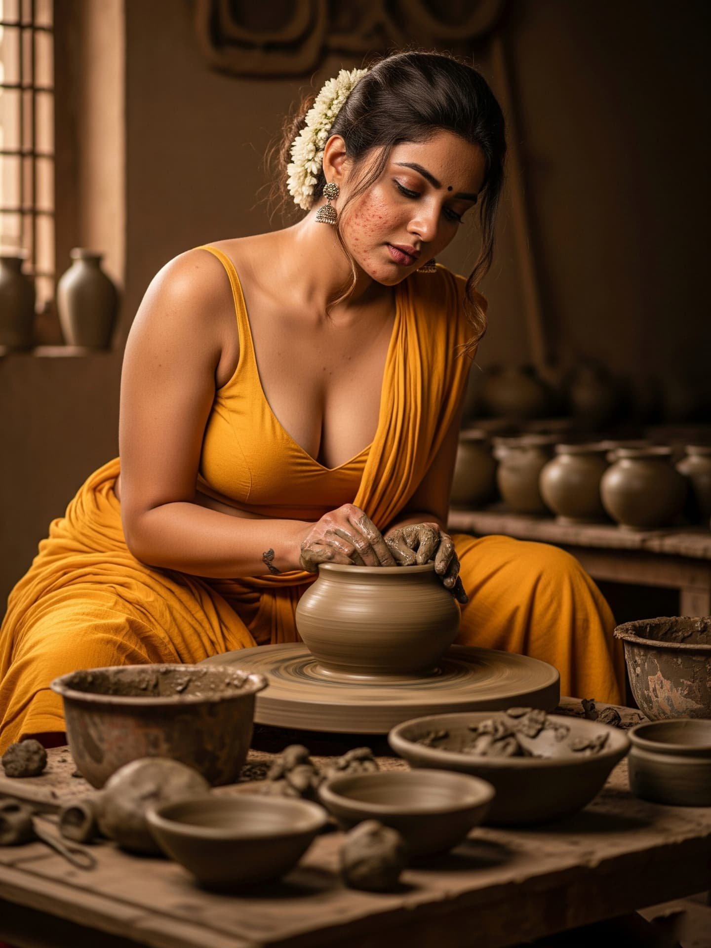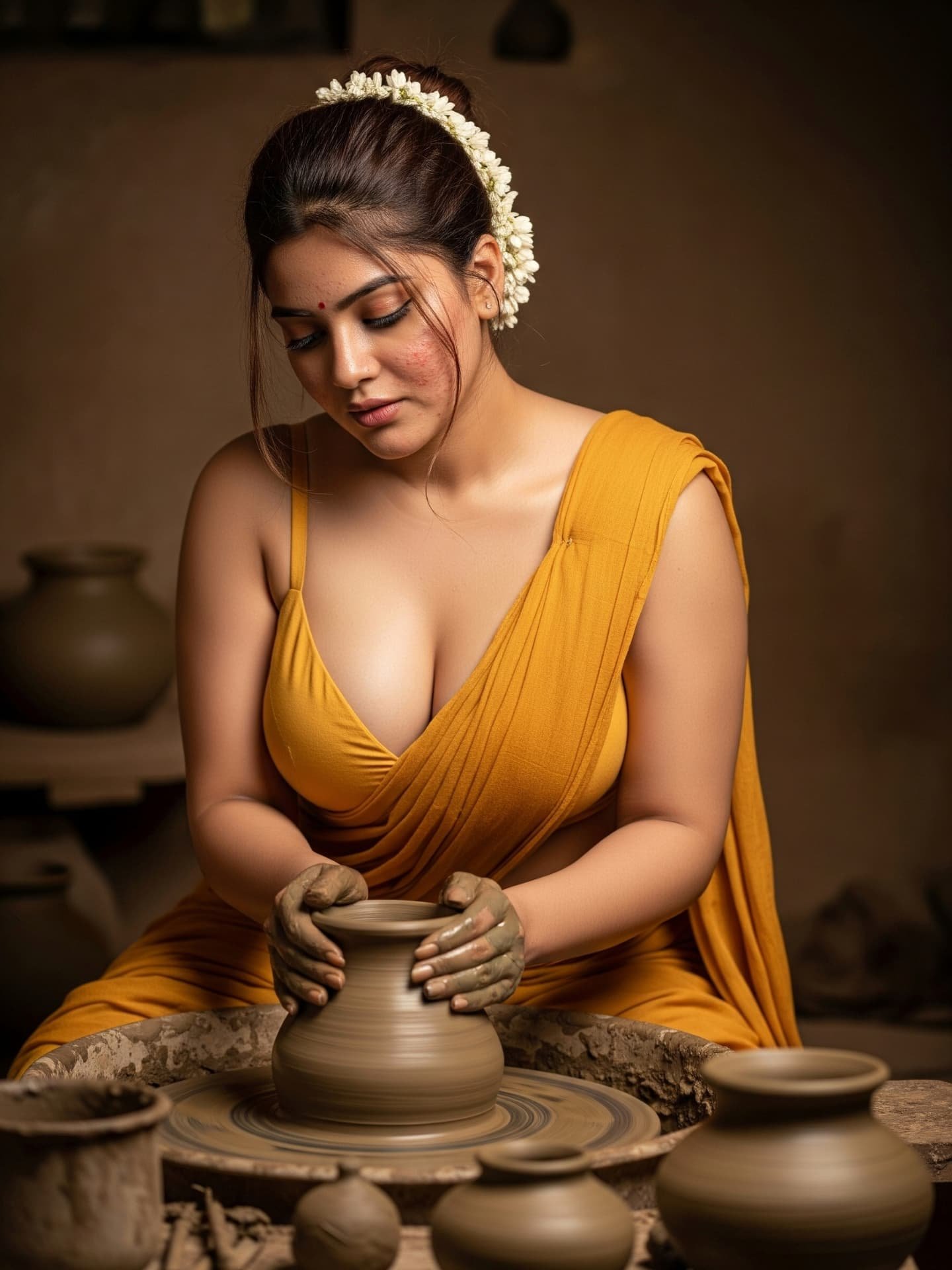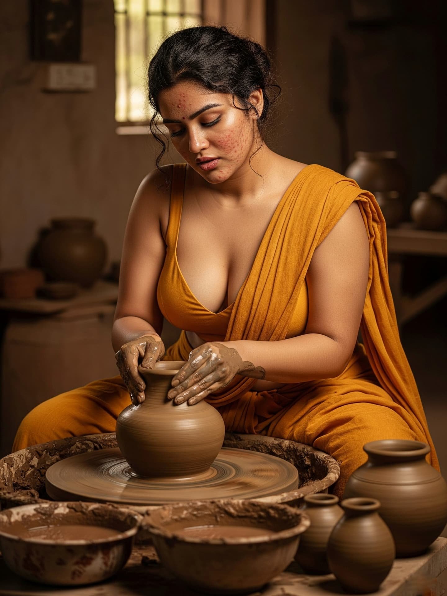 [Pottery, Art, Saree, Craftsmanship, Traditional, Natural beauty, Handmade, Village life, Artistic, Clay, south Indian]