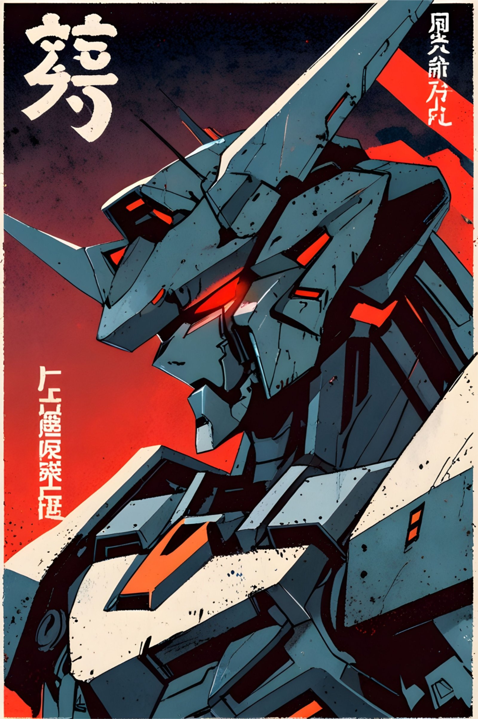 Mecha japonés con ojos rojos inspirado en color carmesi