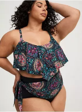 View Full Post Plus SizeFloral Print Tankini Set Lace Up Back Tank Top & High Waisted Bottom 2 Piece Bathing Suit