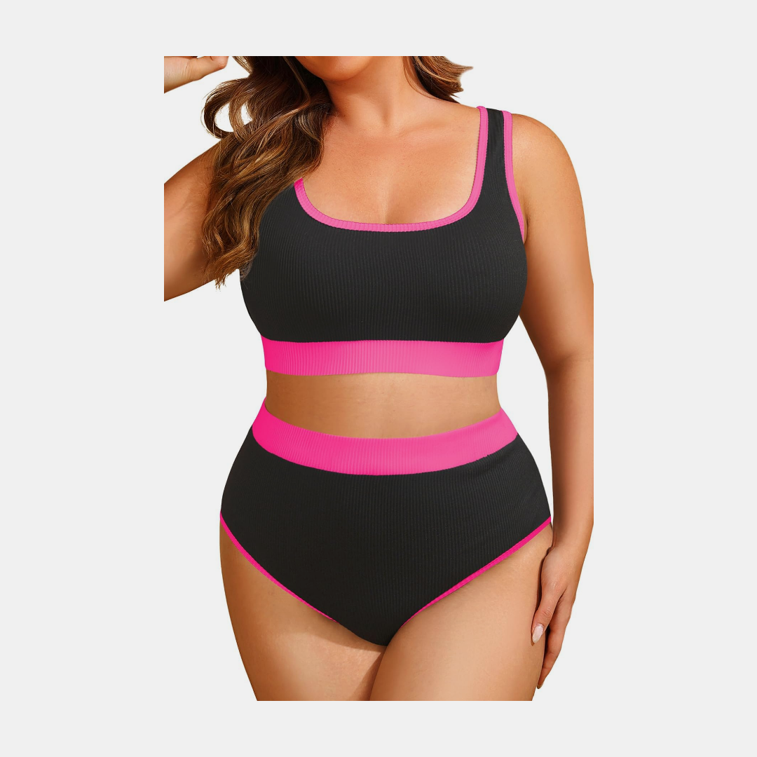 Tempt Me Women Black Pink Plus Size High Waisted Bikini Set Two Piece Swimsuit Full Coverage Sporty 2 Piece Bathing Suits 18 Plus
