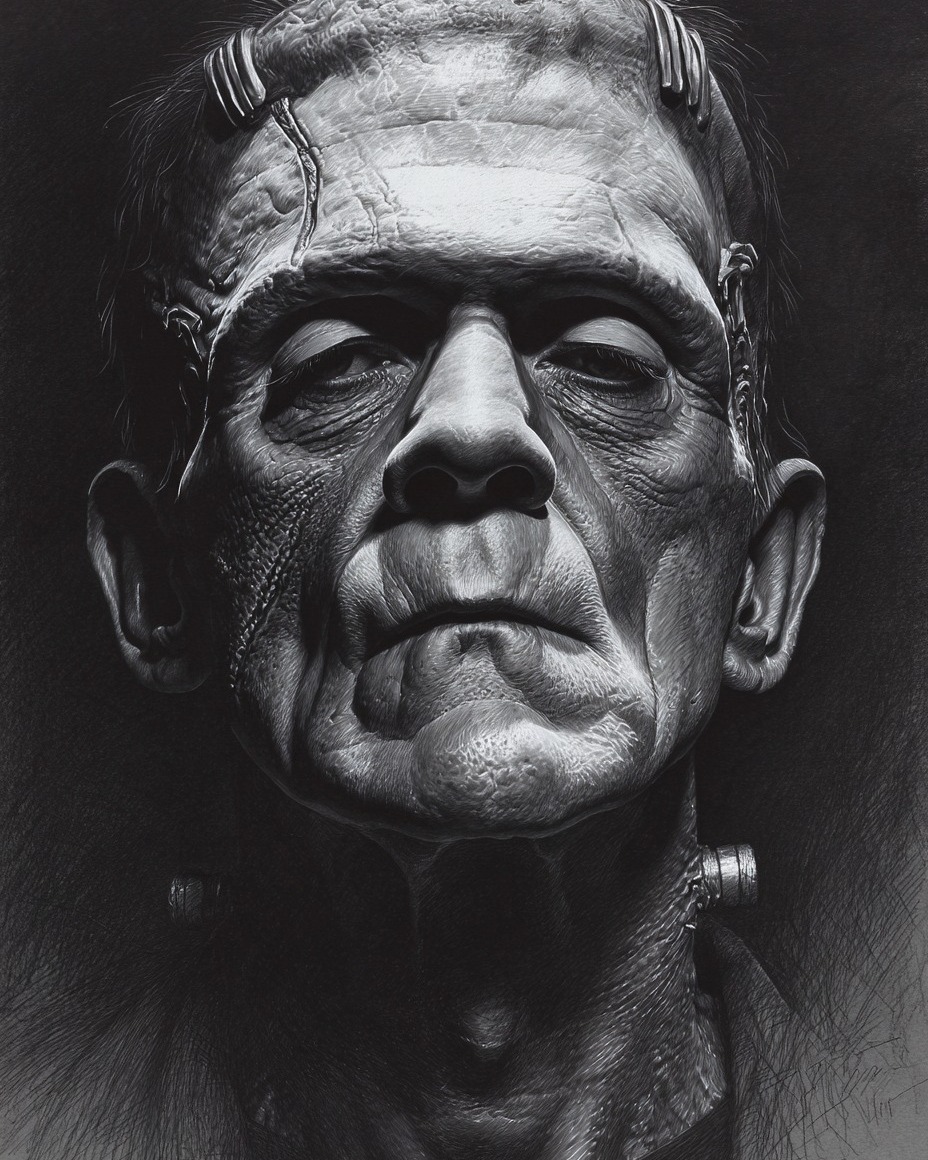 The Monster never asked to be born—but he endures, stitched from the sins of ambition and the silence of rejection. These portraits aren’t just horror icons—they’re a reminder: the real monsters are always human.