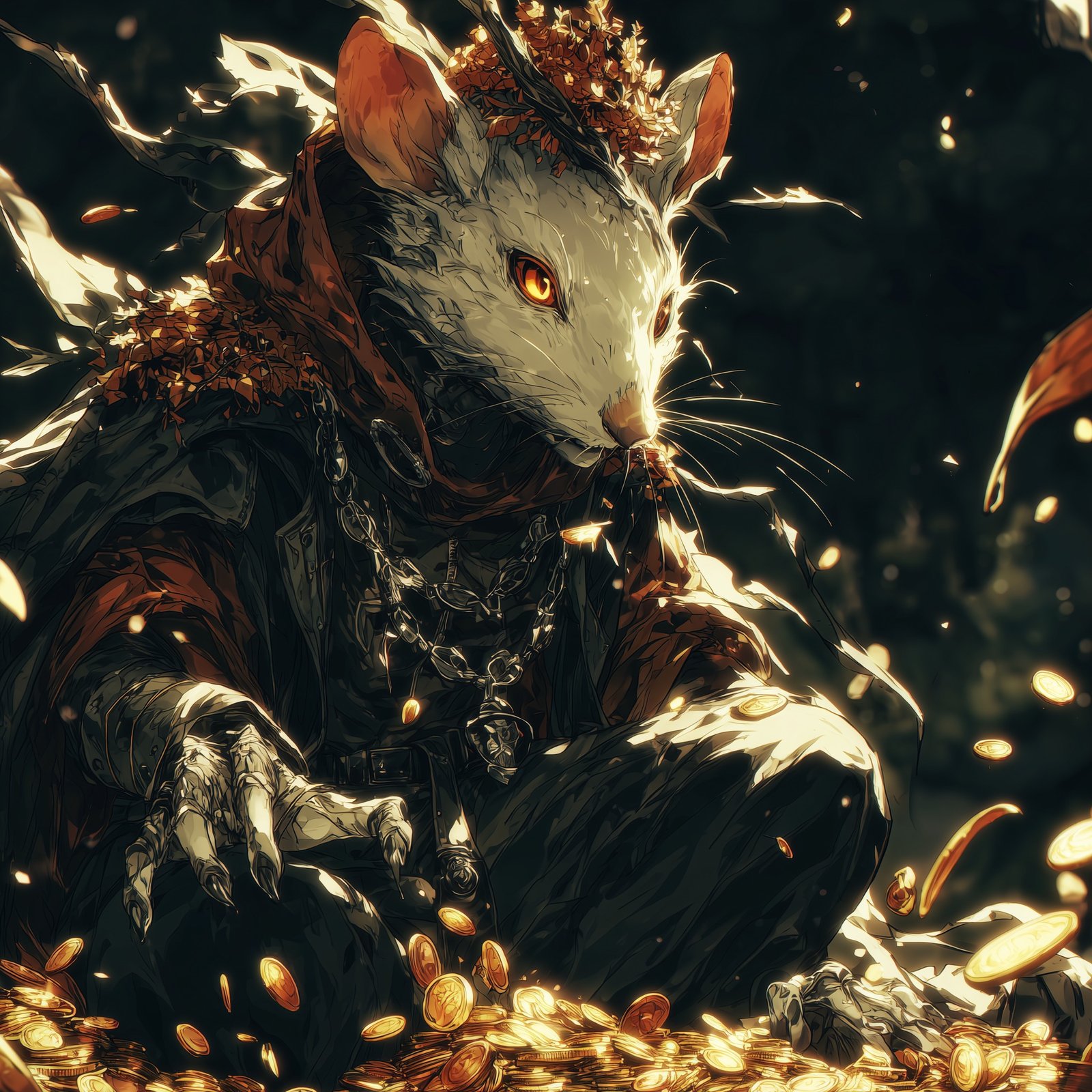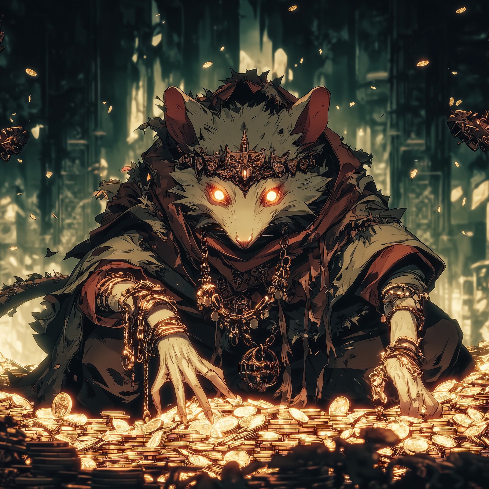 They call him **Basura, the Rat King**—a scavenger crowned in ruin, a monarch of forgotten gold. Every coin he touches carries a curse, every shadow whispers his name. In the undercity, power isn’t given… it’s clawed from the dark.