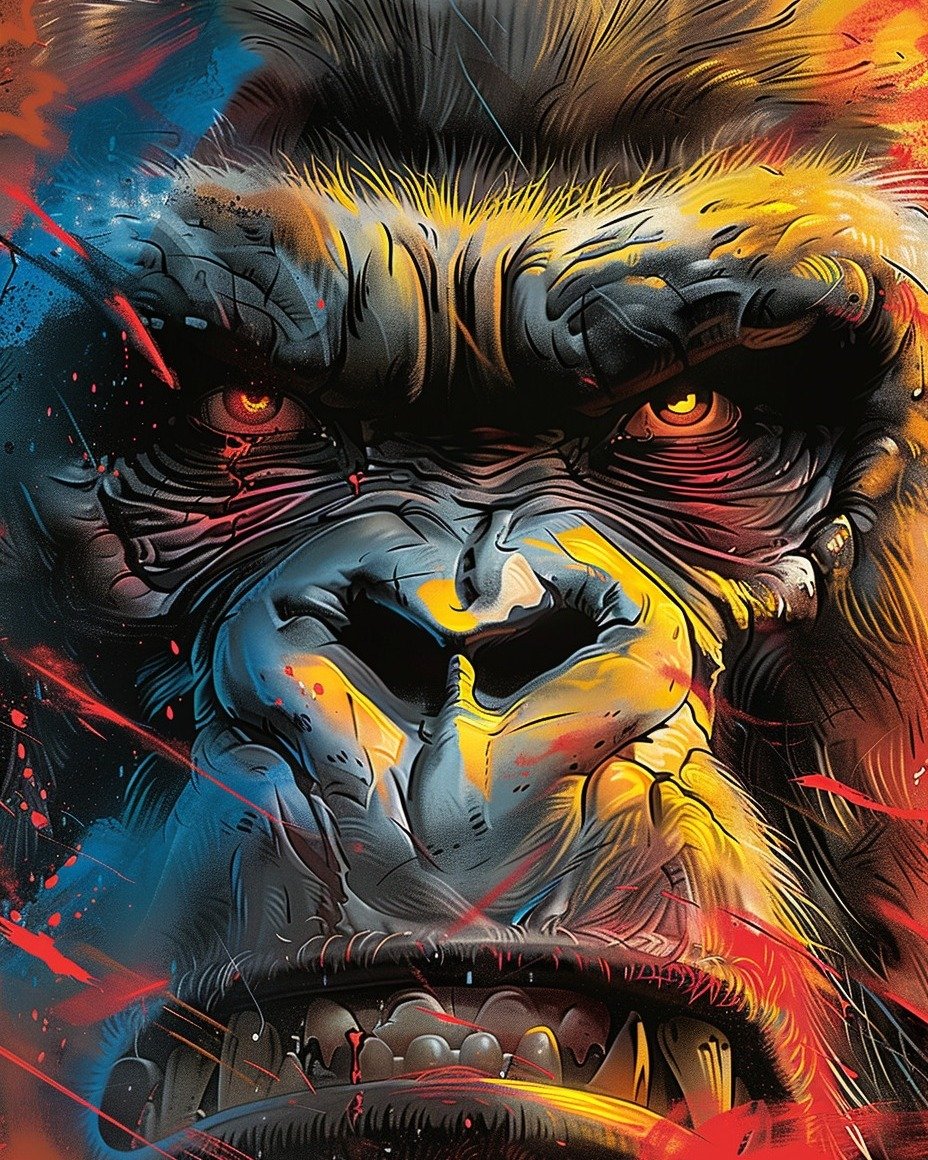 “Unleashing the primal power within! 🦍🔥 These vibrant, intense gorilla portraits bring out the raw ferocity of the wild. From electric colors to fierce expressions, it’s a battle cry of strength and survival. 🌌💥